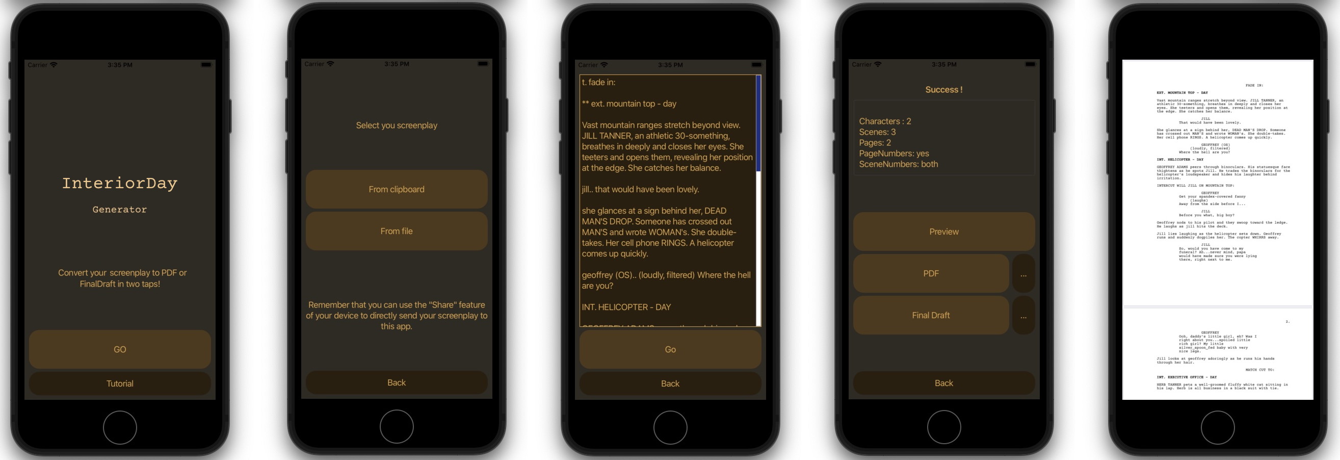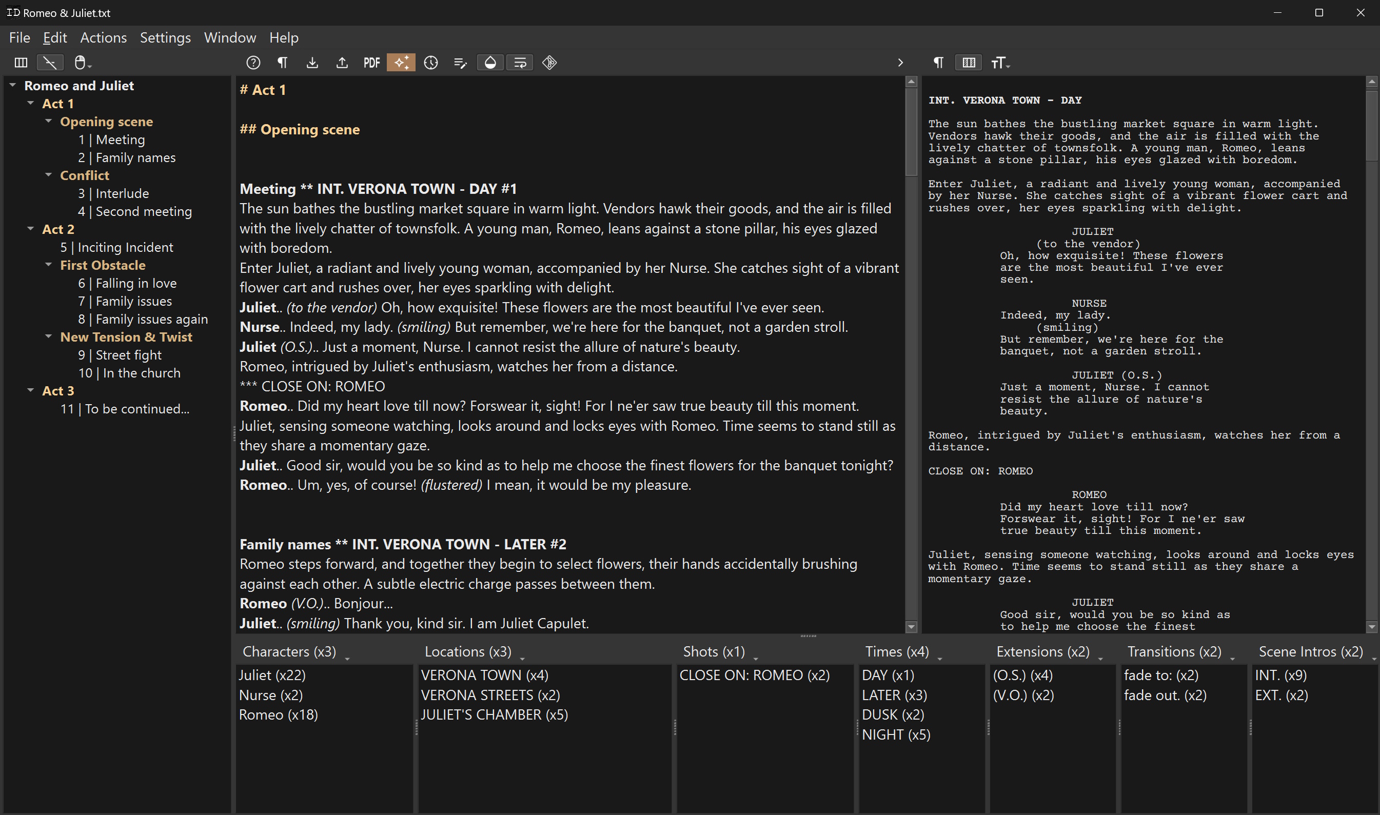 Check out the full syntax doc.Generate PDF or FinalDraft file with the free iPhone/Android app: